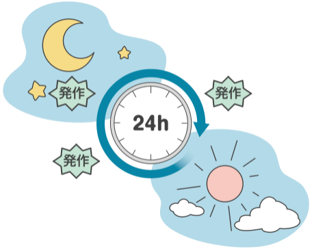 個人差がありますが、目安として24時間以内に3回以上※の発作をくり返す状態です。